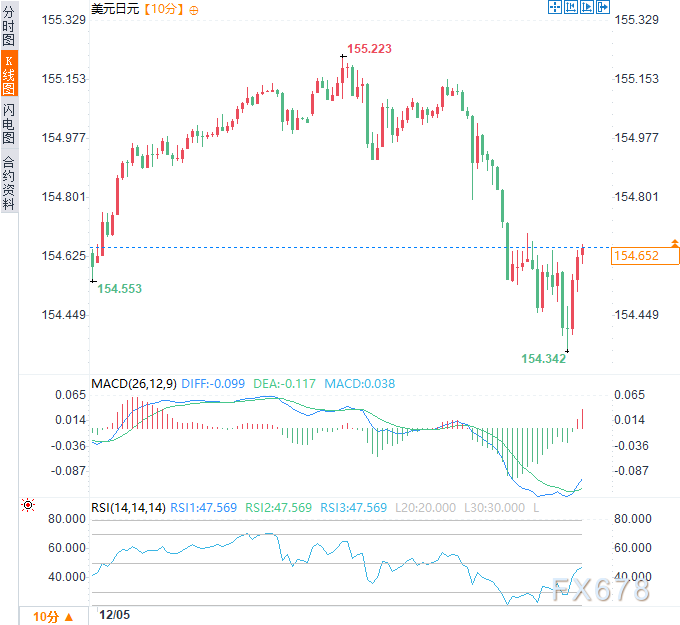 北京时间16:07,美元兑日元交投于154.74/75。